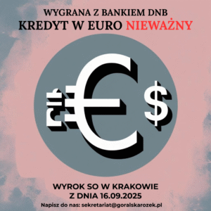 W dniu 16 września 2025 r. nasza Kancelaria otrzymała wyrok Sądu Okręgowego w Krakowie, który ustalił nieważność umowy kredytu indeksowanego do Euro. Umowa zawarta była późno, bo w 2010 roku z bankiem DNB. To ważny sygnał dla tych kredytobiorców, którzy swoje zobowiązania zaciągnęli w innych walutach niż w CHF.