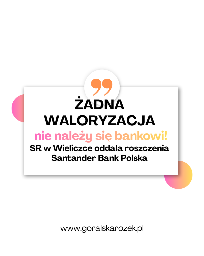 Wyrok jest nieprawomocny – bank ma prawo do wniesienia apelacji. Niemniej wyrok Sądu Rejonowego w Wieliczce wpisuje się w utrwaloną już i jednolitą linię orzeczniczą, zgodnie z którą roszczenia banków o waloryzację bądź o zmianę wysokości świadczenia po prawomocnym rozliczeniu nieważnej umowy nie mają oparcia w prawie. Będziemy informować o dalszym biegu sprawy.
